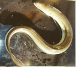 . La anguila tambien está amenazada de extinción dada la fuerte contaminación de los ríos. A la derecha angelote (Squatina oculata) que alcanzaba hasta un metro y medio de larga. Desde hace muchos años no se ve en la Lonja del pescado de Torrevieja