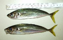 ![]() ![]() A la izda Jurel negro (trachurus trachurus) de 41 cm y 650 gr, muy frecuentes en esta zona .El color del dorso es gris o verde-azulado. Flancos amarillo-verdosos muy plateados y con irisaciones de distintos colores. Vientre blanquecino y plateado. Tienen una mancha negra en el ángulo posterior del opérculo, extendida un poco por el origen del tronco.La talla máxima registrada corresponde a 70 cm , aunque la talla más común es de los 22 cm. Peso máximo 2 Kg . A la derecha foto procedente de Fish base: jureles blancos trachurus mediterraneus. La talla máxima registrada corresponde a 60 cm , aunque la talla más común es de los 30 cm . |