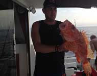 | Bajo, unas imágenes de una pesquera hecha por la tarde, a bordo del Avizor, cerca dde la costa. También pescaron alguna dorada y pageles. Pulsen imágenes para ampliar |