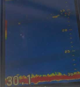 Para localizarlos es fundamental el uso de una buena sonda y saber interpretar sus imágenes. Nosotros los encontramos, en esta época, en sondas de hasta 30 metros, de ordinario en o cerca de fondos rocosos, aunque también , como en esta ocasión, en fondos de arena o fango . Bajo, unas cuantas imagenes ese día de pesca |