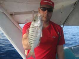 | Arriba a la izquierda, J.Manuel, muestra uno de los mabres, que entraron al langostino. En el centro, palomina o trachinotus ovatus, y a la derecha. arriba, jurel blanco y bajo una sorela hembra. Pulsen imagenes para ampliar |