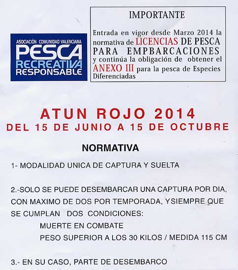En otra seccion de esta página, exponemos el estado actual de su pesca, y la ya aceptada recuperación, (al menos parcial ) del atún mediterráneo.Vea aqui un esquema de la normativa vigente. Vea también, las sanciones por su incumplimiento: Pulse aquí . Vea esta otra mas reciente