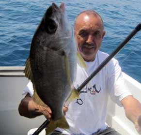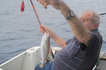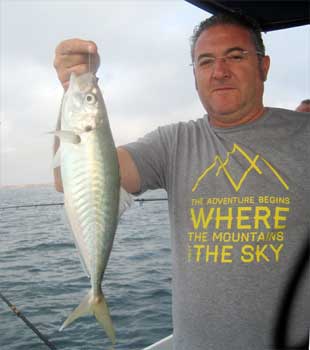 Asi pues, mejor preparados, con aparejos con terminales muy cortos de cable de acero ( para ser escondidos en media sardina), fuimos alla de nuevo. Queríamos hacer una pesquera breve y desembarcar a eso de las 12.