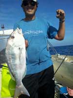 Arriba un dentón pescado en unos 50 m de sonda por Cayetano y Javier Lopez, junto con unas cuantas chopas de buen tamaño