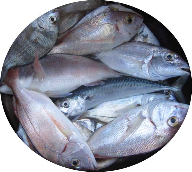 Arriba, un modesto pero entretenido rancho con pageles, vidriadas, chopas,pageles y algun pargo. |