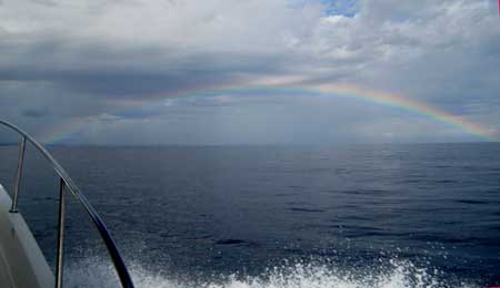 El dia 8, aparte de una mar en calma, la naturaleza nos ofreció esa bella imagen, en forma de un completo arco iris.Pulse para ampliar |