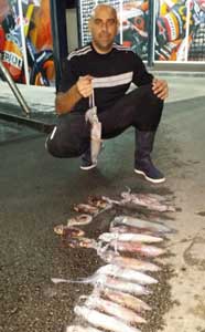 A laizquierda David con uno de los calamares. A la derecha, nuestras mejores piezas del día |