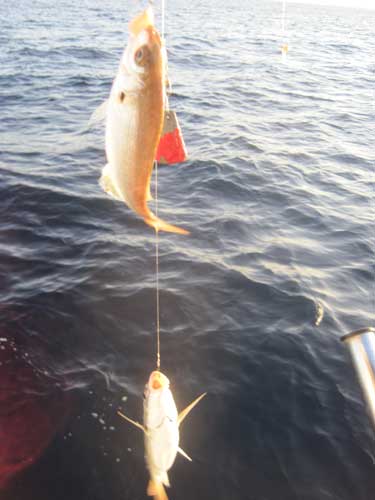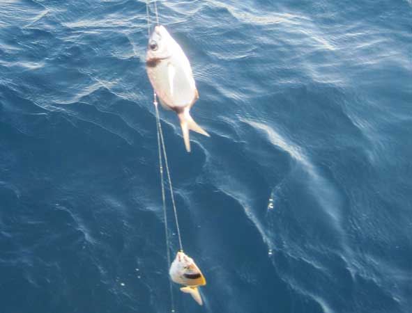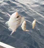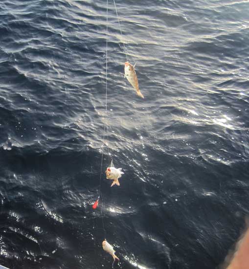 | Otro dia de calma y pesca en Septiembre . Algunos pageles chopas y calamares, a bordo del GLAND |