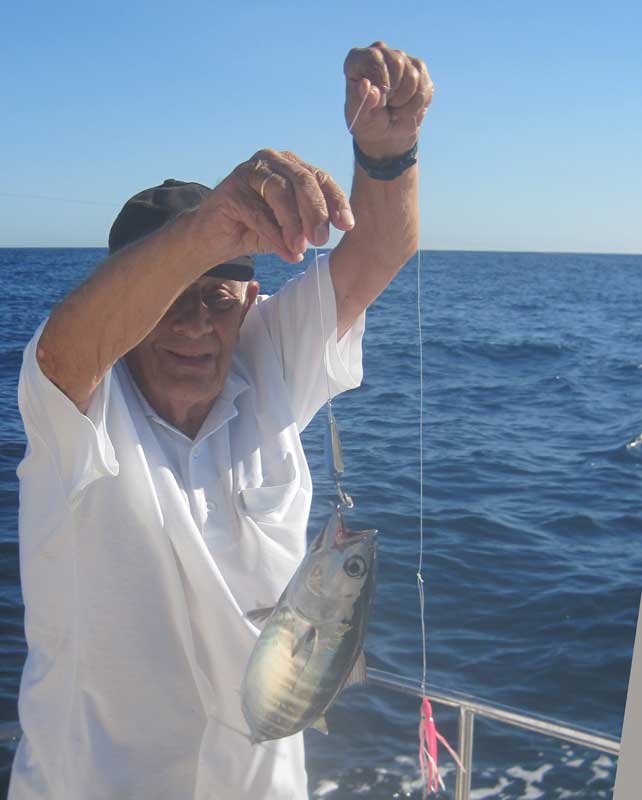 Bajo. otras imágenes de ese día de pesca: Jose M.Linares con un atún que devolvió al mar |