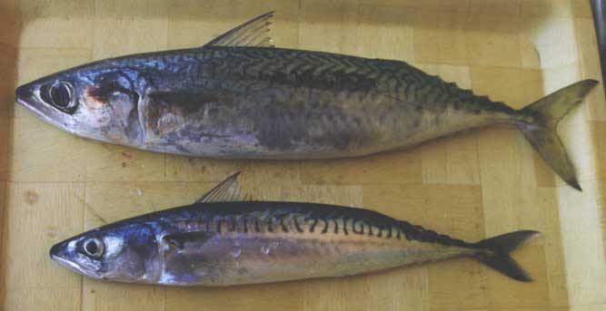 Muchos pescadores confunden al estornino (también llamado por los pescadores tonino) con la caballa que es más listada y el estornino más moteado . Vea bajo un ejemplar de caballa y un estornino en una foto de archivo