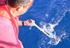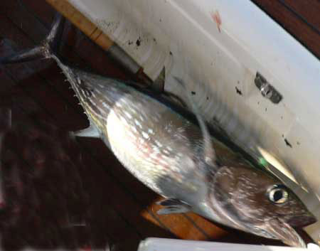 imagen por la derecha : una de las albacoras prendida del anzuelo