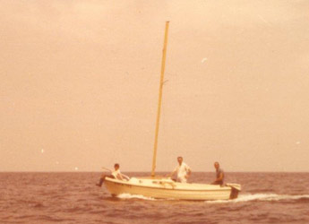| Bajo: algunas de las embarcaciones del autor a lo largo de su vida de pescador y una de sus capturas : Una gran aguja imperial |