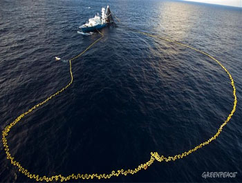 Todo ello, para organizaciones como WWF/Adena, Green Peace, Cofradías de Pescadores del levante español, asociaciones deportivas de Pesca de Altura etc. ha puesto al atún en peligro de extinción aunque no esté declarado como tal en otras organizaciones internacionales. El ICCAT ha mostraba su preocupación afirmando que las capturas de atún rojo de 33.000 toneladas anuales para el Atlántico Occidental y el Mediterráneo ya no eran sostenibles, rebajando el cupo de capturas para la CEE de 20.000 a 18.500 Ton. Como ya he comentado ADENA va mucho más lejos afirmando ( esto esta escrito en el año 2003) que para que la población del atún mediterráneo se mantuviese estable solo debería capturar 4.000 ton. en vez de las 24.000 que según datos del Instituto Ocenográfico de Málaga se capturaban anualmente en el Mediterráneo. Otras causa del progresivo deterioro de los caladeros mediterráneos son : - La pesca de arrastre con motores cada vez más potentes y redes resistentes(que permiten pescar incluso por encima de zonas pedregosas), practicada a veces en zonas prohibidas, por debajo de los 50 m . de sonda, arrasando así praderas de posidonias y toda clase de vegetación, lugar de desove de muchas especies , matando en sus redes peces inmaduros que luego se tiran al mar al no ser posible su venta. De hecho hoy dia y me refiero a 2011 es frecuente ver ( y soy testigo de ello), a arrastreros locales y de puertos vecinos faenar en fondos incluso de menos de 30 metros de sonda