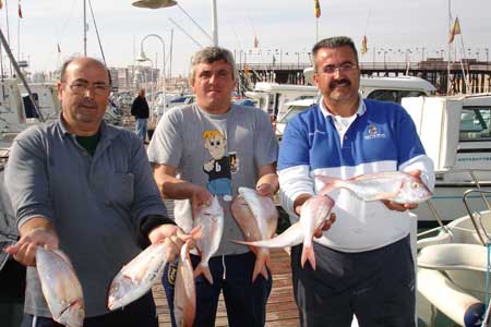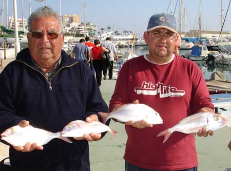 Esto es lo que han logrado mis dos paisanos, siendo el patrón del Avizor. José Manuel, colega mio en las labores informativas de la revista del Club y desde hace poco también en Pesca a Bordo, una prestigiosa revista de ámbito nacional. Aparte de conseguir la pieza mayor, y lograr otros 5 pageles que sobrepasaron el kilo, su promedio de pesca ha casi duplicado a cada uno de sus tres inmediatos seguidores: Guzmán del" Tamara y Celia"-un verdadero experto en esta clase de pesca- , Paredes, de "El Dorado" perteneciente durante muchos años a la Alta Competición de la Federación Nacional y al 4º I. Vergel de Orihuela, patron de la "Duna", seleccionado para los mundiales el pasado año.