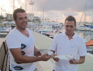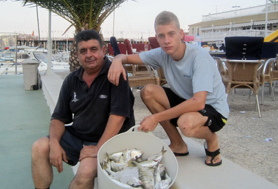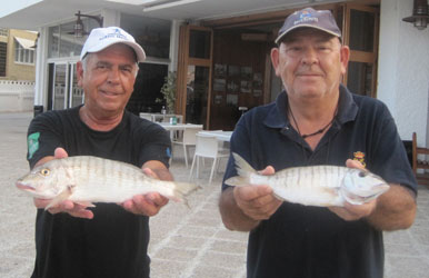 ![]() Dos aficionados madrileños muestran dos de sus capturas, a bordo del CALAS |