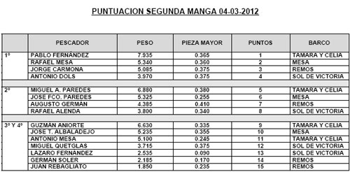 El 3 de marzo ha tenido lugar la segunda manga de la Liga de Campeones. Participaron 15 pescadores a bordo de 4 embarcaciones. El día resultó bueno , soleado, aunque con algo de viento del NO o maestral . Se pescó en la zona conocida como la 1ª y 2ª de levante a unas 4 a 5 millas al NNE del puerto de Torrevieja.