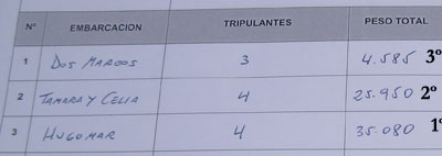 Triunfó la embarcacion HUGOMAR patroneada por A. MARTÍNEZ . Bajo, la tripulación y sus capturas |