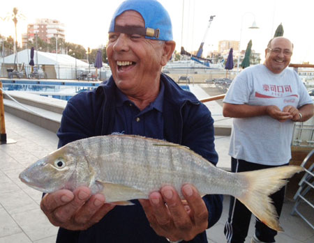 ![]() Fernando Marcos logró la pieza mayor. con un mabre de 700 gr El récord local lo tiene hasta ahora JoseR. R.odriguez, a bordo del Avizor, con un mabre de 705 gr ! tan sólo 5 gr.mas! |