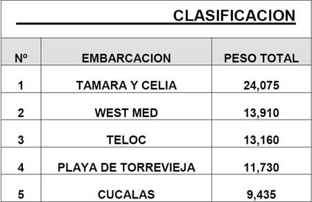 ![]() Arriba Pez de S. Pedro ( o gallo-pedro), brótola y pageles, parte de la pesca del PLAYA DE TORREVIEJA , clasificado en 4º lugar |