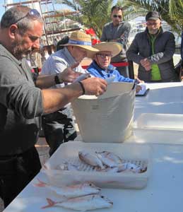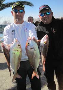 | Nos hizo un tiempo espléndido, primaveral, increíble para estas fechas de avazado invierno. Participaron 14 embarcaciomes con un total de 54 pescadores. En esta modalidad, se valoraba el peso total, no el promedio, por lo que la participación fue muy numerosa. Además, cada tripulación escogía sus caladeros favaoritos, por lo que también se valoraba, el conocimiento de los enclaves mas ricos en pagel...y también la suerte de que tu conocido pesquero no estuviese demasiado "tocado"... además de que tuvieses la suerte también de que no hubiese mucha corriente .. Se exigía también que el tamaño mínimo fuese de 20 cm |