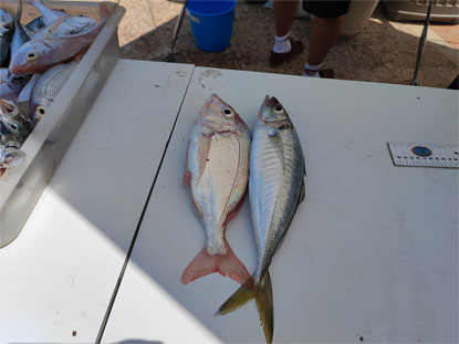 Arriba a la izda, dos buenos pageles. A la derecha :Una sorela macho (parece, ver el morro negruzco) y un pagel |