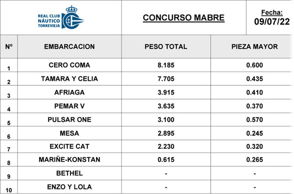 | CONCURSO DE PESCA DEL MABRE DEL MABRE. Julio 2022 | |