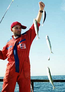 Quise probar algo que leí hace tiempo. Corté una de las más pequeñas caballas en filetes y luego en pequeños rectángulos de un cm. de piel con un poco de masa muscular. Resultó ser un cebo tan eficaz como los pequeños tacos de sardina salada que utilizábamos, pero con una notable ventaja. Dada la voracidad de estos peces los atacaban igual, pero la firmeza de la piel de la caballa fresca, permitía que con un mismo trozo de cebo se capturaran 3 o 4 ejemplares en sucesivos lances. Al final, pese a la adversidad de la corriente, pasamos nuevamente una jornada realmente divertida. Creo que el pescador deportivo debe tener un afán de superarse día a día mejorando sus propios récords personales, intentando cobrar piezas -como atunes o grandes seriolas- que antes le parecían inalcanzables . Pero pienso también, que el aficionado debe aprovechar las oportunidades que ofrece la mar y que permiten al pescador no demasiado exigente, disfrutar cuando ello sea posible de todas las modalidades de su deporte favorito.
