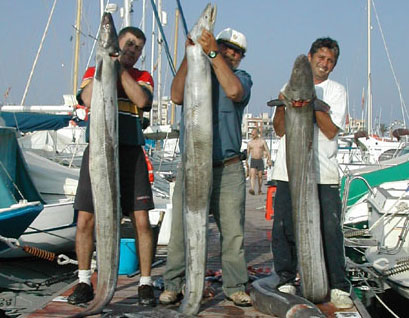 Congrios pescados en 290 m. de sonda por la embarcación Carolina 2. El mayor de ellos pesó 32 kg