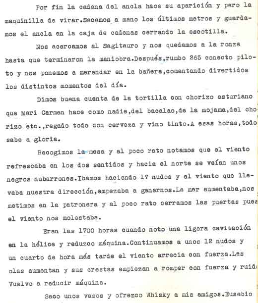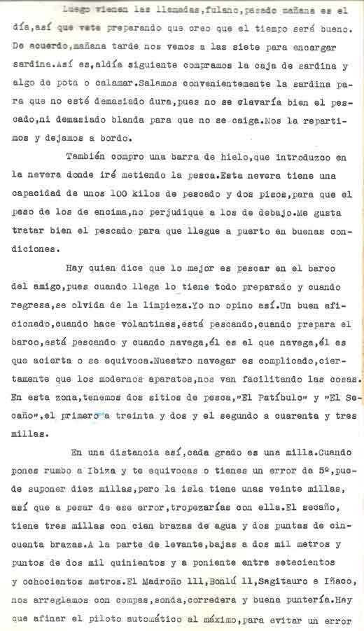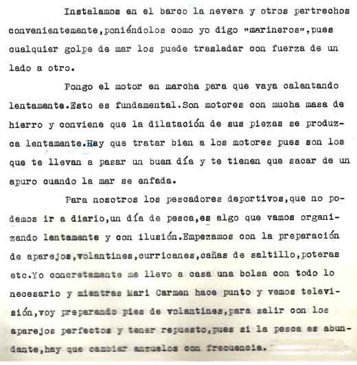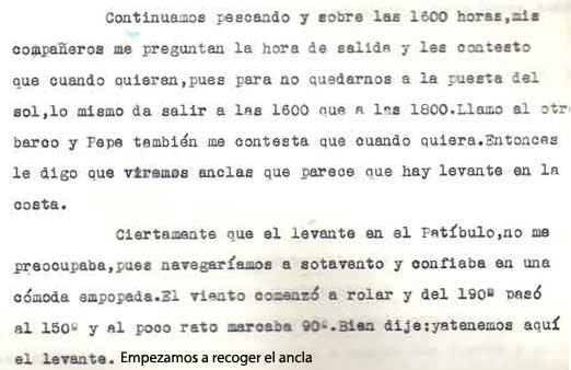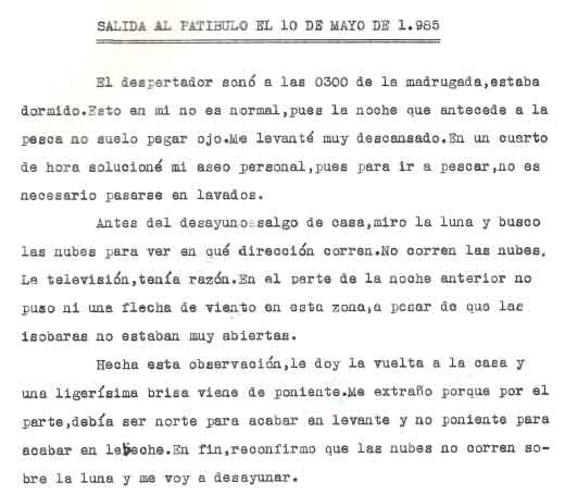 | A modo de presentación Miguel Cuervo Arango es de sobras conocido en el mundo empresarial y deportivo de nuestra zona y también conocido ya a traves de estas páginas por lo que no voy a hablar de él Si que quiero justificar la presencia de este artículo en esta web . Está escrito por un veterano pescador, en unos tiempos en los que el llegar a caladeros como el Patibulo o el Seco, situados a mas de 30 millas de la costa con ausencia de los medios de localizacion por GPS o Loran, aún no aparecidos, era una verdadera aventura, no exenta incluso de dos riesgos importantes: Uno, no dar con el caladero despues de 5 o 6 horas de navegación . El segundo sufrir las consecuencias de unos partes metereologicos no tan perfeccionados como los actuales. Si ahora tampoco son seguros al cien por cien, hace 30 años lo eran mucho menos. No era raro (y yo lo vivi personalmente), ir por ejemplo al Seco descde Torrevieja , distante de aqui 36 millas, con barcos que navegaban a 7 a 8 nudos, y despues de amenudo 5 horas de navegación, volvernos "bolo" por no encotrar el caladero, (por navegar tan solo con ayuda del compás y sonda), o tenerse que volver precipitadamente por mal tiempo. Pienso que por ello y por la prosa interesante y apasionada de este veterano, que el artículo que hoy les presento, puede ser de interés para veteranos o pescadores que se inician ahora en este deporte. Disculpen el formato del mismo . He querido respetar lo mas posible el original. Muchas gracias |