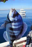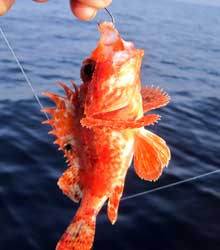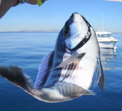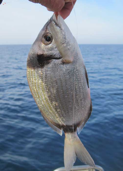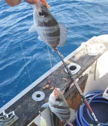 | Nada más llegar a este segundo fondeadero, logramos un buen pargo y unas cuantas vidriadas . Posteriomente conseguimos un puñado de serranos de buen tamaño , algunas vidriadas mas y alguna chopa, por lo que pronto levantamos el "hierro" para volver a puerto. |