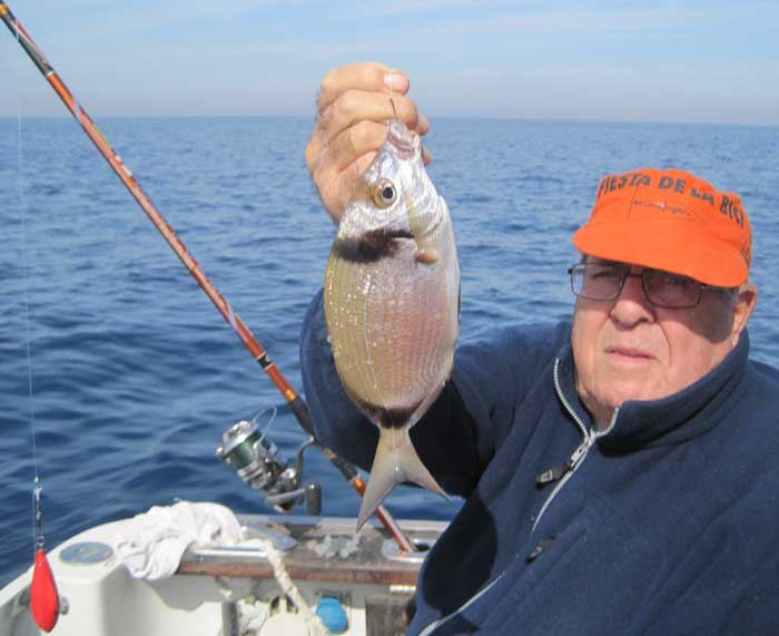 | El 23 de abril, provistos de un buen puñado de ermitaños, y de langostinos congelados, fuimos, a bordo del GINTONIC, en busca de pageles, pese a lo avanzado de la temporada. Como es sabido el pagel se pesca preferentemente en otoño e invierno. La pesca resultó muy entretenida , pues aparte de pageles de unos 400 gr, pescamos pargos medianos, chopas y vidriadas. Bajo, unas cuantas imágenes de la pesca del día |
