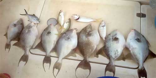 Miguel luchando con una buena pieza, que resultó ser una lampuga de cerca de 3 cuartos