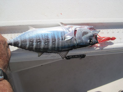 Los bonitos tienen un tamaño medio entre 300 o 400 gr y los 600 o 700, siendo las bacoretas del año mas bien pequeñas , de unos 200 a 300 gr.o menos. Se empiezan a coger algunos atunes pequeños que todos los buenos aficionados, volvemos al mar
