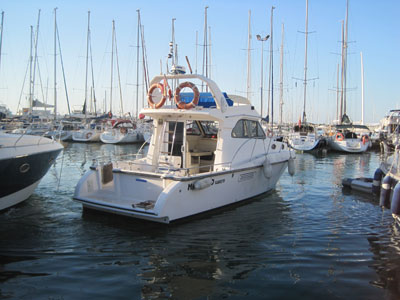 El 27 de agosto Miguel Cuervo Arango, Ex Presidente del R.C.N. de Santa Pola y de una Asociacion Nacional de Club, ex Director de las Salinas de Santa Pola y con un largo curriculum deportivo en remo, pesca etc, tuvo la gentileza de invitarme a bordo de su barco, para pasar una mañana, que resultó agradabilisima, de pesca y de intercambio de experiencias e informacion en este tema, que el domina como pocos.