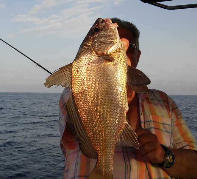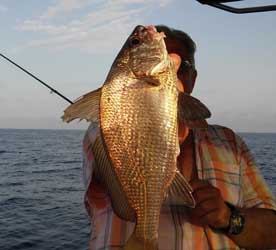 Un gran pargo, pescado por David a bordo del GINTONIC. (pulse imágenes para ampliar)
