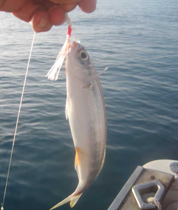 Boga que atacó al izar el aparejo ese pequeño señuelo , eficaz también para caballas y jureles