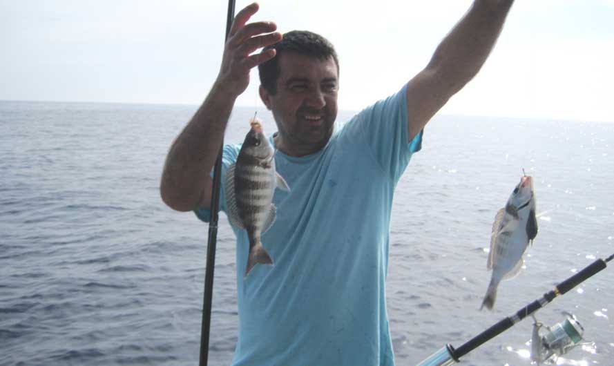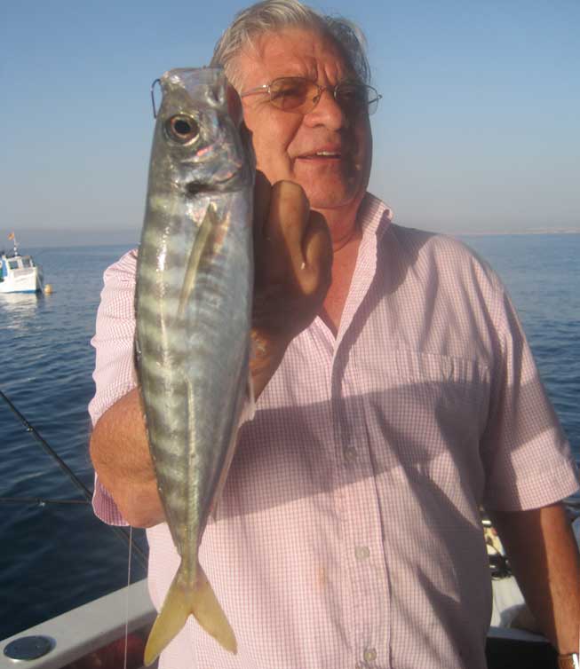 | Al comprobar que en el fondo había morralla, bogas, chuclas etc, pescamos en los distintos fondos que marcaba la sonda, logrando incluso dobletes de estorninos o jurelas que al tener un peso entre 300 y 400 gramos, daban buen juego |