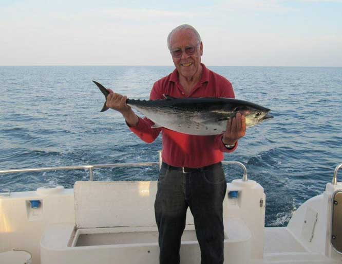 Vicente a punto de liberar un atun "sanjuanero" de 4 kg
