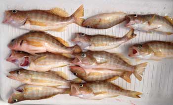 Parte de una buena pesca a bordo del GLAND, de pageles de 36 cm y grandes serranos de 22 .Pulse las imagenes para ampliar