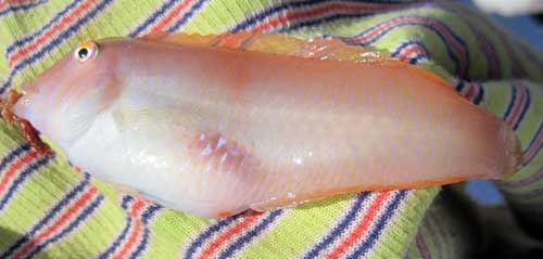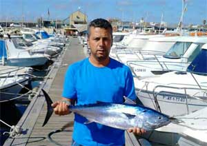 | En la segunda parte de la mañana, quisimos tentar los galanes o raós Xyirichtys novacula, por cierto que con pocos resultados. Quizás esto se debió, a que las aguas no estaban suficientemente claras. Con todo, pudimos degustar , ya en casa , este sabrosísimo pez cuyo precio- segun algunos-ha podido alcanzar en ocasiones precios astronómicos | |
