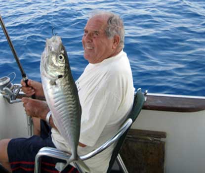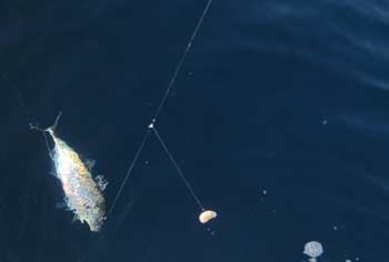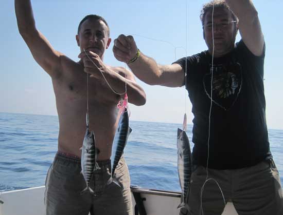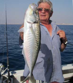 Una mañana de sorelas y galanes..y algo más Desde hace ya muchos años, en este mes de agosto, tenemos como favoritas dos pescas: la de la sorela y la del raó o galán. Ambas fueron, en otro tiempo, de excelentes resultados y también motivo de algún artículo que me fue publicado en Pesca a Bordo, y que luego, si gustan, pueden releer. Ese día, a primeros de agosto, salimos, a bordo del GINTONIC, bien temprano, para huir de las altas temperaturas que pronosticaban para el centro del día. En la primera parte de la mañana, fuimos a un conocido caladero muy próximo a Torrevieja, en busca de sorelas, cuya bravura y tamaño entre 400 y 600 gr hacen su pesca , muy divertida |