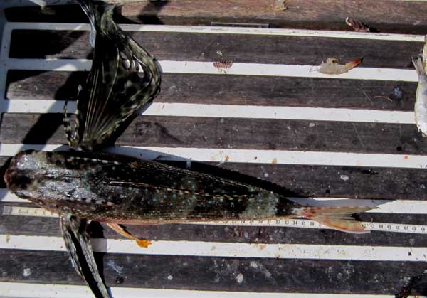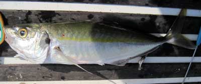 ![]() David, con una preciosa captura: Una chicharra -Decapterus volitans -( esta vez de 43 cm y cerca de 3 cuartos de kilo), que exibe sus preciosas alas desplegadas. Pulse imagen para ver tamaño . Días pasados capturamos otra ( en aquella ocasión fué un recrord local, con sus 48,5 cm y un kilo,cien de peso. Pulse aquí |