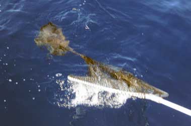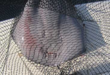 | Una captura no deseada. Un chucho o pastinaca ( Dasyatis pastinaca), que sin sacarla del salabre, huyendo de su peligroso aguijón, devolvimos al mar, una vez soltada del aparejo | |||||||||||||