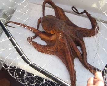 Pulpo de kilo y medio, uno de los 3 que enganchamos |