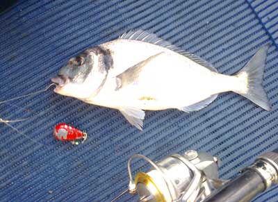 Dorada del terreno de 750 gr pescada a bordo del GINTONIC. Ese día logramos otras 4 menores |