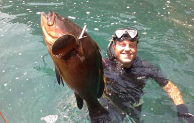 La imagen que inserto a continuación es de un buen amigo, C. Lopez, un buen cazador y pescador de superficie tambíén, y que ahora lo hace en pesca submarina. Se trata de un mero de mas de 5 kilos.