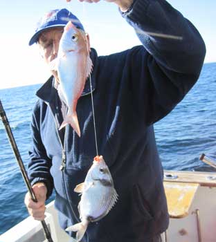 Pese a ello la pesquera fué muy bonita con alguna peza notable y un par de dobletes de pagelones.. Su tamaño medio era de 400 a 600 gr y de una talla de 32 a 35 cm, aunque hubo alguno de los pageles que sobrepasó los 3/4 de kilo Vea algunas imágenes de la pesca del dia Haga clik en las fotos para aumentar |