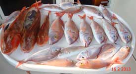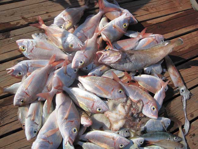 Pageles, serranos, besugo, vidriadas, un gran pulpo de kilo, calamar etc constituyeron la pesca de ese día