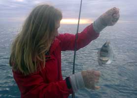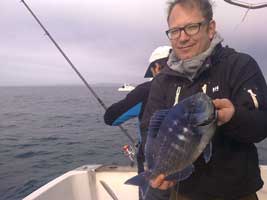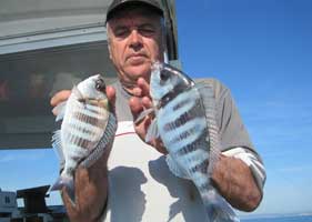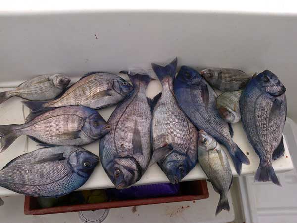 | Aquel "fatidico" día íbamos a bordo otro colega al que quiero respetar el anonimato, (no sea que me corra a gorrazos), el patrón Jose Manuel y yo .Nos llevó a un sitio querencioso de chopas, y despues de dos o 3 fondeos, cuya precisión él exigió desde el primer momento, empezó a darnos, a mi sufrido compañero y a mí,"un repaso a chopas" que fue -lo confieso-un verdadero trauma para mi amor propio de veterano pescador con mas de 60 años de pesca a bordo de una embarcación . Dicho percance, trauma, paliza , desgracia, humillación o lo que uds quieran llamarle, hizo que mi compañero de paliza me dijera ya en el coche de vuelta a casa : -Andrés: esto no ha ocurrido nunca ¿Está claro? Menos mal que aunque pocas veces, posteriormente, y de un modo separado, le hemos podido dar a nuestro anfitrión algun que otro " sobo" , cosa que nos ha compensado en parte, de aquel mal trago de aquel día, en el que le vímos subir a J.Manuel chopa tras chopa, para unas pocas que nosotros lográbamos pescar . Y les voy a revelar, aunque la mayoría de mis lectores ya lo sepan, parte del secreto ( por llamarle de algún modo) -Por supuesto que los sitios querenciosos hay que aprenderlos, y en esto, lo siento , pero no puedo ayudarles (por "competencia profesional y secreto confiado") - Es necesario el fondeo con precisón.Ya lo he dicho antes. Si las chopas están en lo mas alto del acantilado submarino, o en la ladera de fuera de las piedras, hay que colocar alli el cebo, aunque tenga que fondear otra vez .Pero procure no hacerlo muchas veces, pues puede auyentarles del pesquero.Para ello estudie con el GPS la deriva del barco a barco parado o compruebe la orientación de los fondeos de los barcos de la zona, ya que ésta está condicionada, no solo por el viento, sino ademas por la corriente marina. - Hay que aprender a interpretar el toque sutil - la mayor parte de las veces- de la chopa y dejarla comer.La chopa no es un depredador, no come bruscamente, sino que toma el cebo con suavidad, lo paladea y luego lo traga.Todo esto sin desplazarse rápidamente. Por ello, lo que notaremos es "un blandeo" (término acuñado , yo creo, por J.Manuel) de la fina y sensible puntera de la caña.Ello quiere decir que con una puntera poco sensible, ( como lo que llevaba yo aquel "aciago" día ) probablemente solo notará en levísimo toque que confundirá, lo mas posiblemente con el de la morralla y no le hará ni caso. - Requiere pues una gran atención y concentración. Esperar ese primer "blandeo" y al siguiente dar un amplio y brusco tirón para clavar Bueno , les deseo suerte y que no les pase como a mi aquel día......que segun mi colega no sucedió |