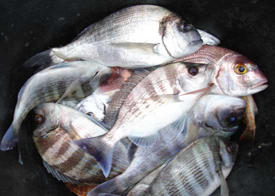 ![]() Aspecto parcial de un buen día de pesca a primeros de enero a bordo del Avizor. Chopas dorada pargo y vidriadas |